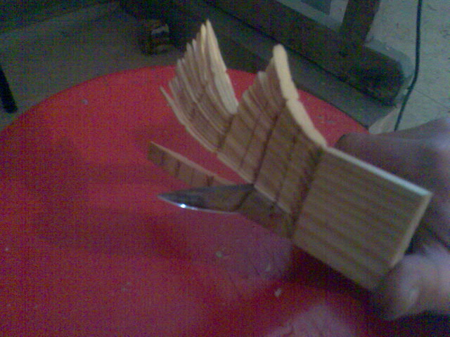 And now a bit larger bird.. remember that the thickness is 6mm. I´ve heard that it´s impossible to whittle so thin pieces from wood with such a thick knife. So here you can see how the impossible becomes possible =D